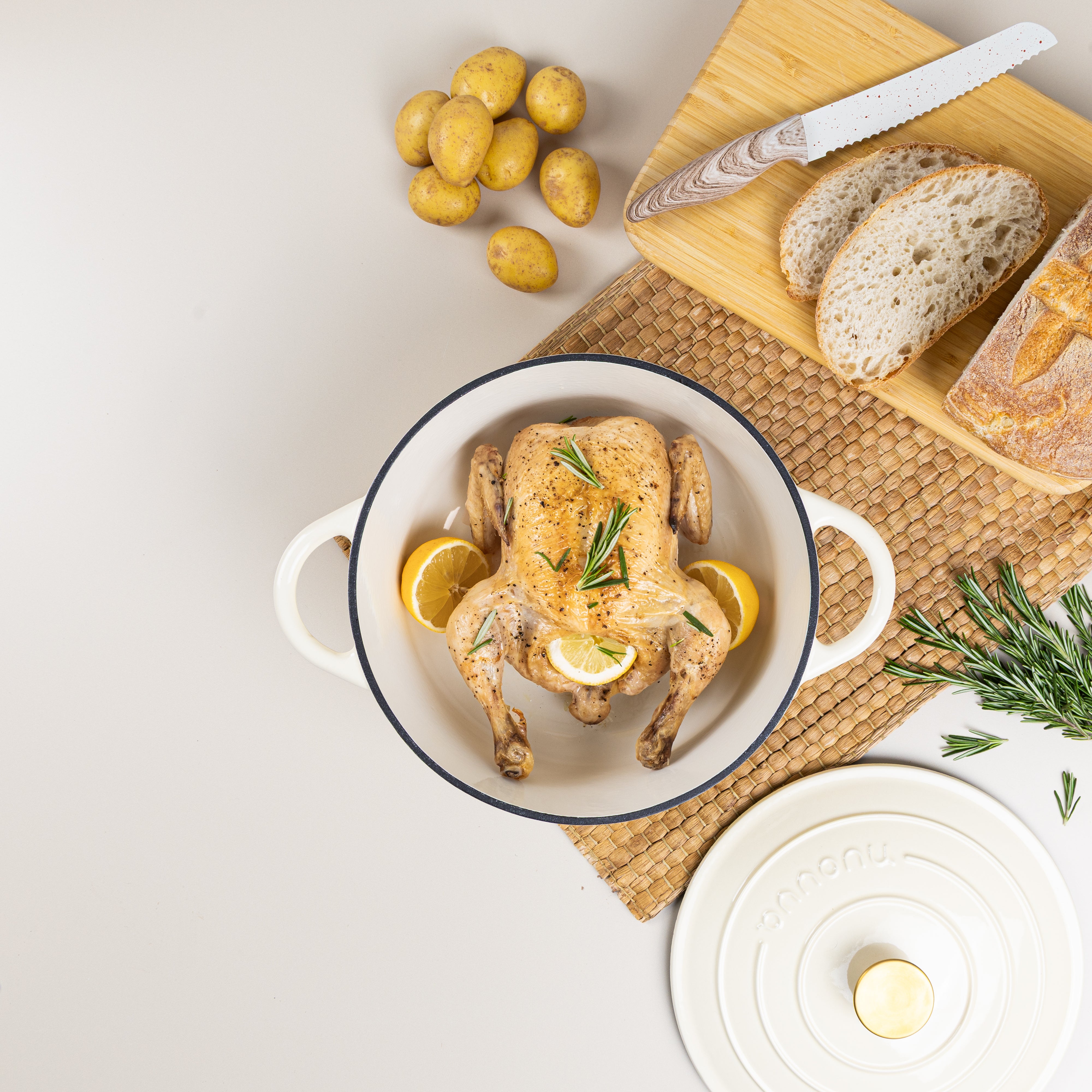 Cast Iron Dutch Oven with Lid Casserole Non-Stick & Ovenproof - 28cm (6L) Light Grey24% Off