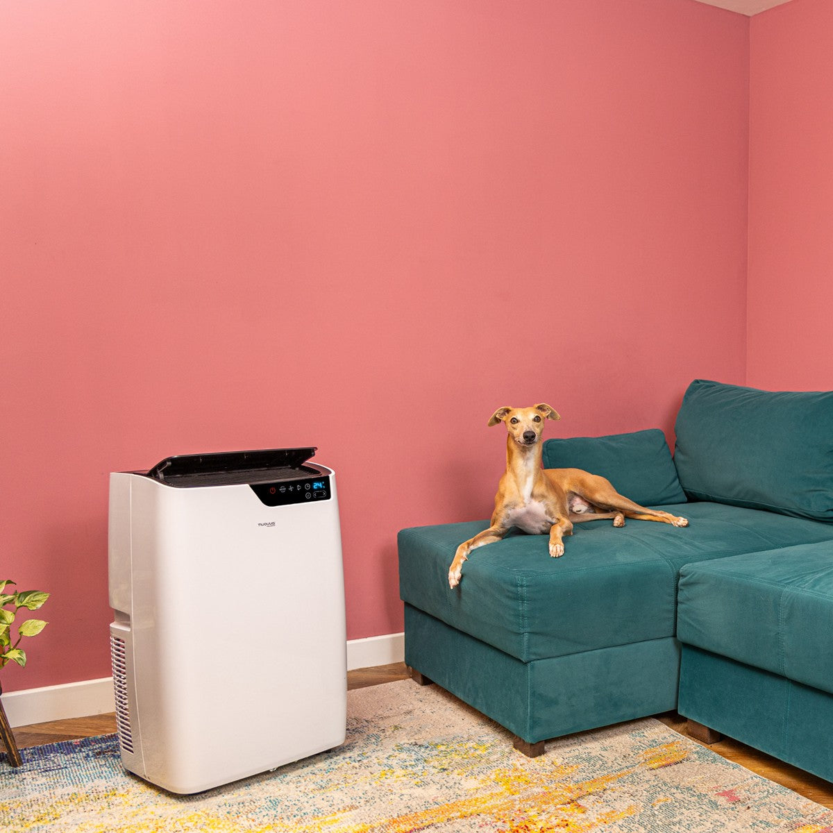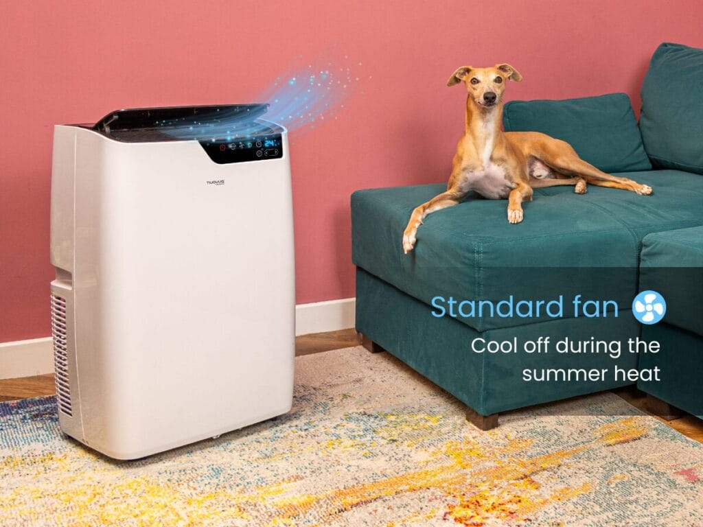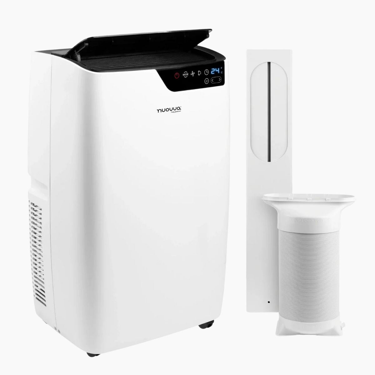 Stay comfortable with this 12,000 BTU portable air conditioner. Features fast cooling, touch screen and remote control, multiple modes, easy window installation, built-in wheels, and energy-efficient performance.