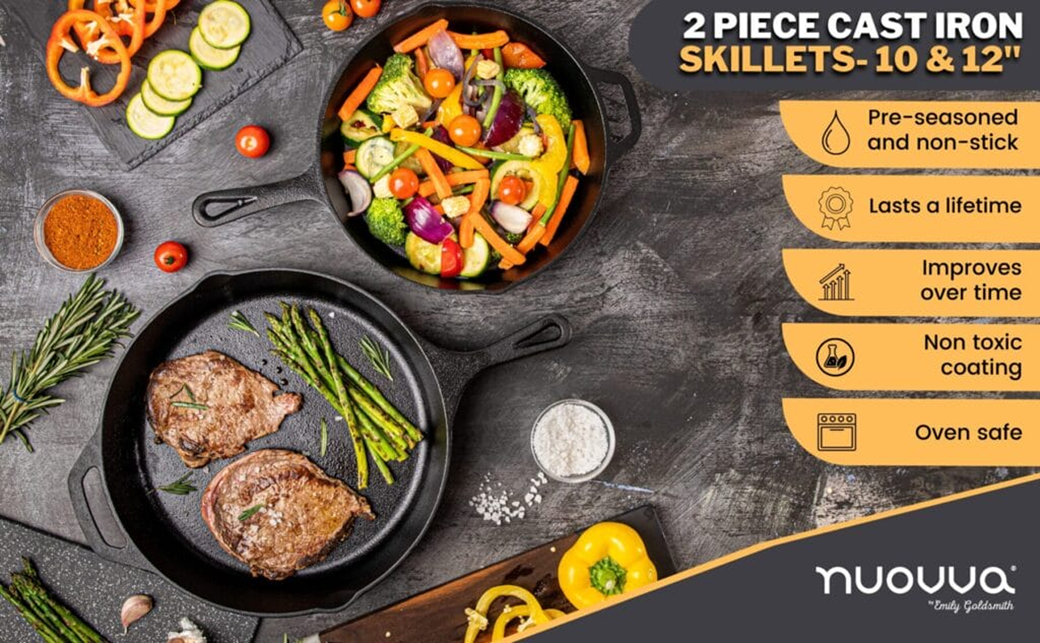 Pre-Seasoned Cast Iron Skillet Frying Pans Set, 25cm & 30cm