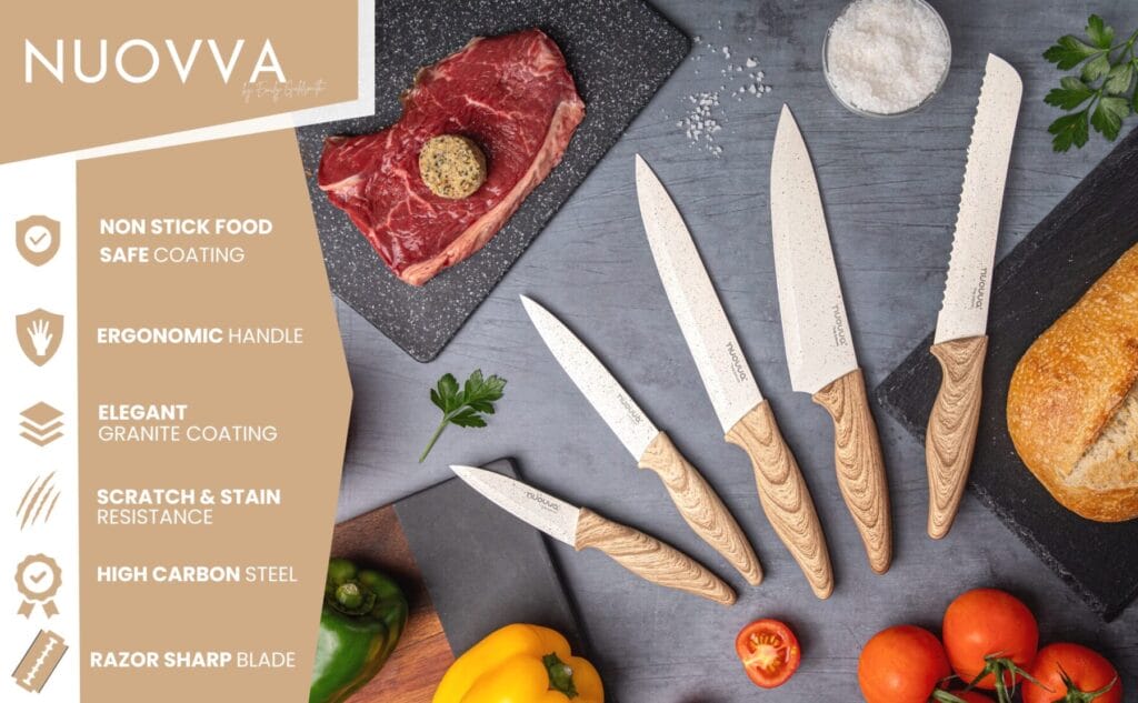 5-Piece Kitchen Knife Set – Chef, Filleting, Bread, Paring & Utility - Non-Stick - Colour Pattern