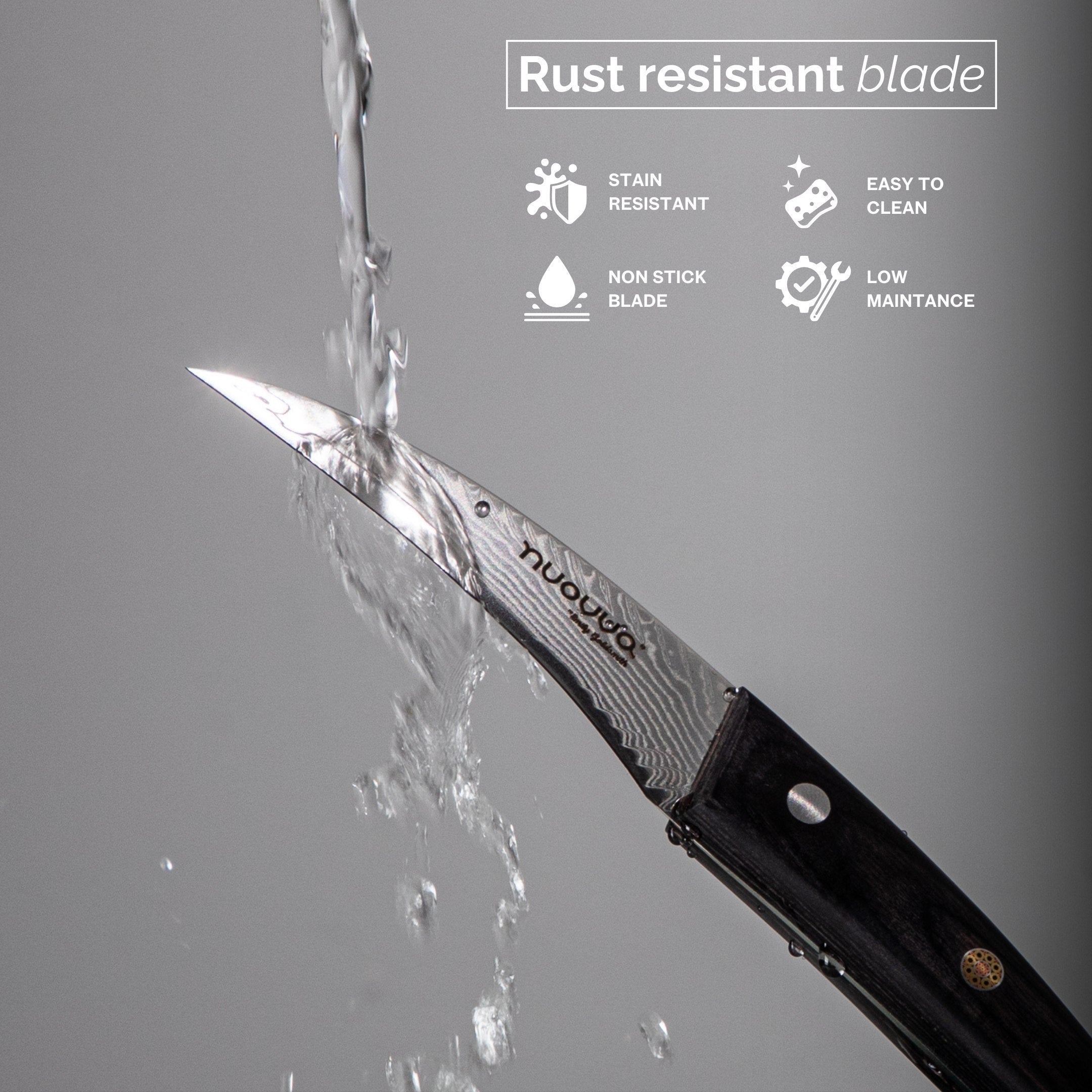 Upgrade your kitchen with the 7" Paring Knife by Nuovva. Made from 67-layer Japanese Damascus steel with a rosewood handle, it offers precision, durability, and elegant control for detailed prep.