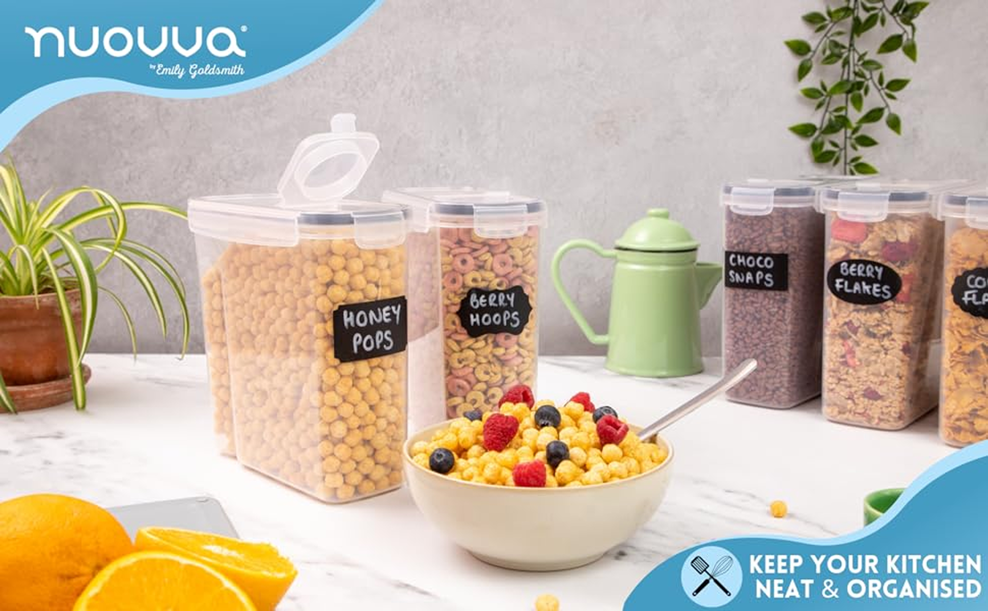 FRESHER FOR LONGER: The BPA free cereal storage container by Nuovva keep your cereals and other foods fresher for longer periods with the airtight functional lids, enjoy crunchy cereals and fresher food!