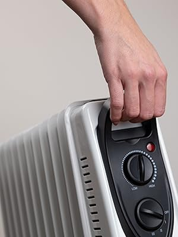 This 2500W oil-filled radiator features 9 fins, 3 heat settings, and an adjustable thermostat.