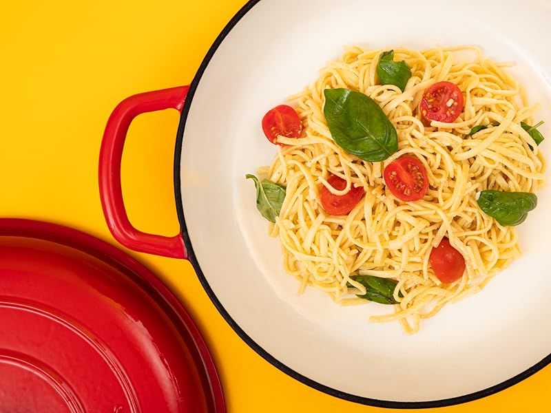 Cook delicious meals with this 22cm (2.9L) cast iron Dutch oven casserole pot. Excellent heat retention for stews, searing & more. Enamel coated, easy to clean. Oven & hob safe with matching lid.