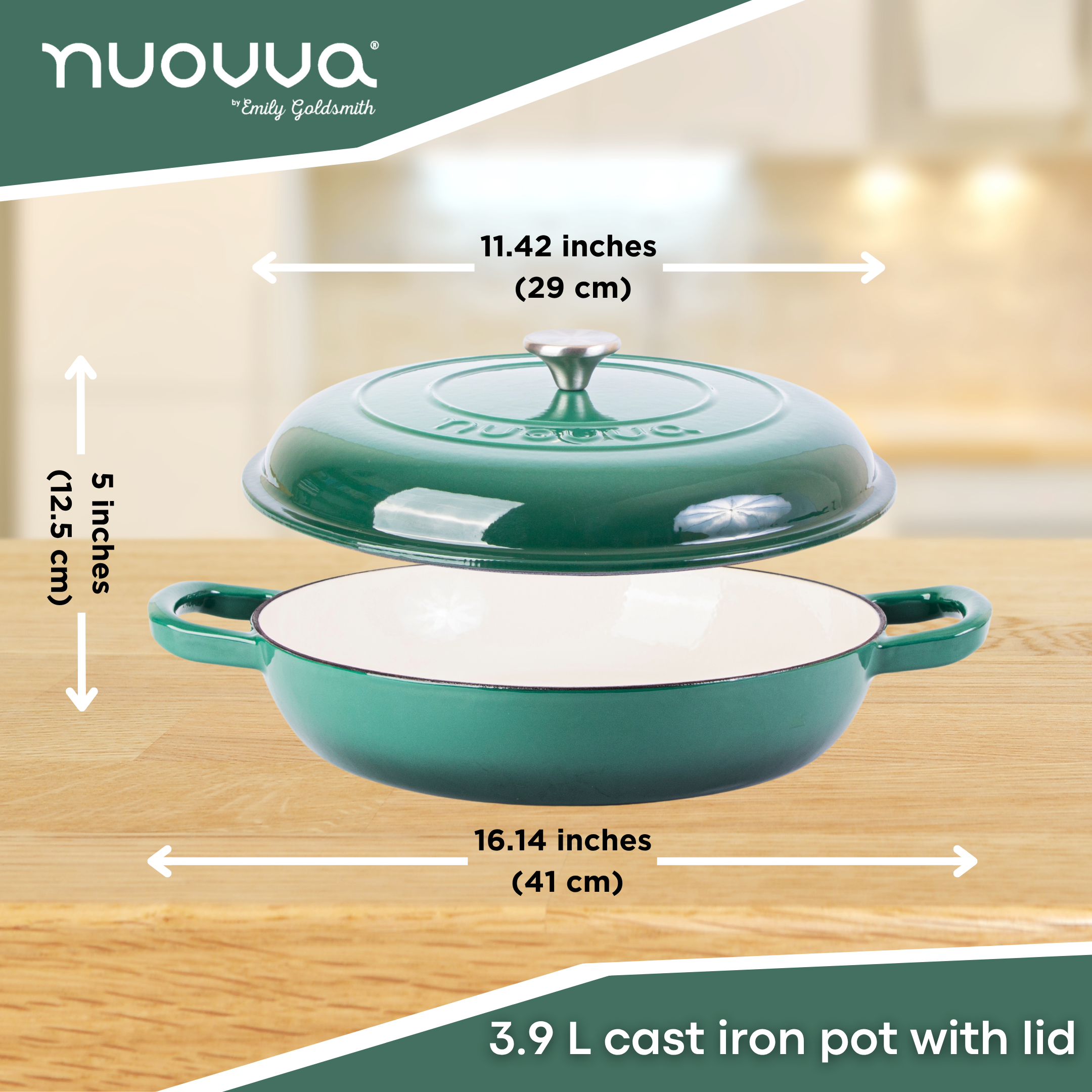 Shallow Cast Iron Dutch Oven Casserole with Lid, Oven-Safe - 3.9L, (29cm) Dark Green