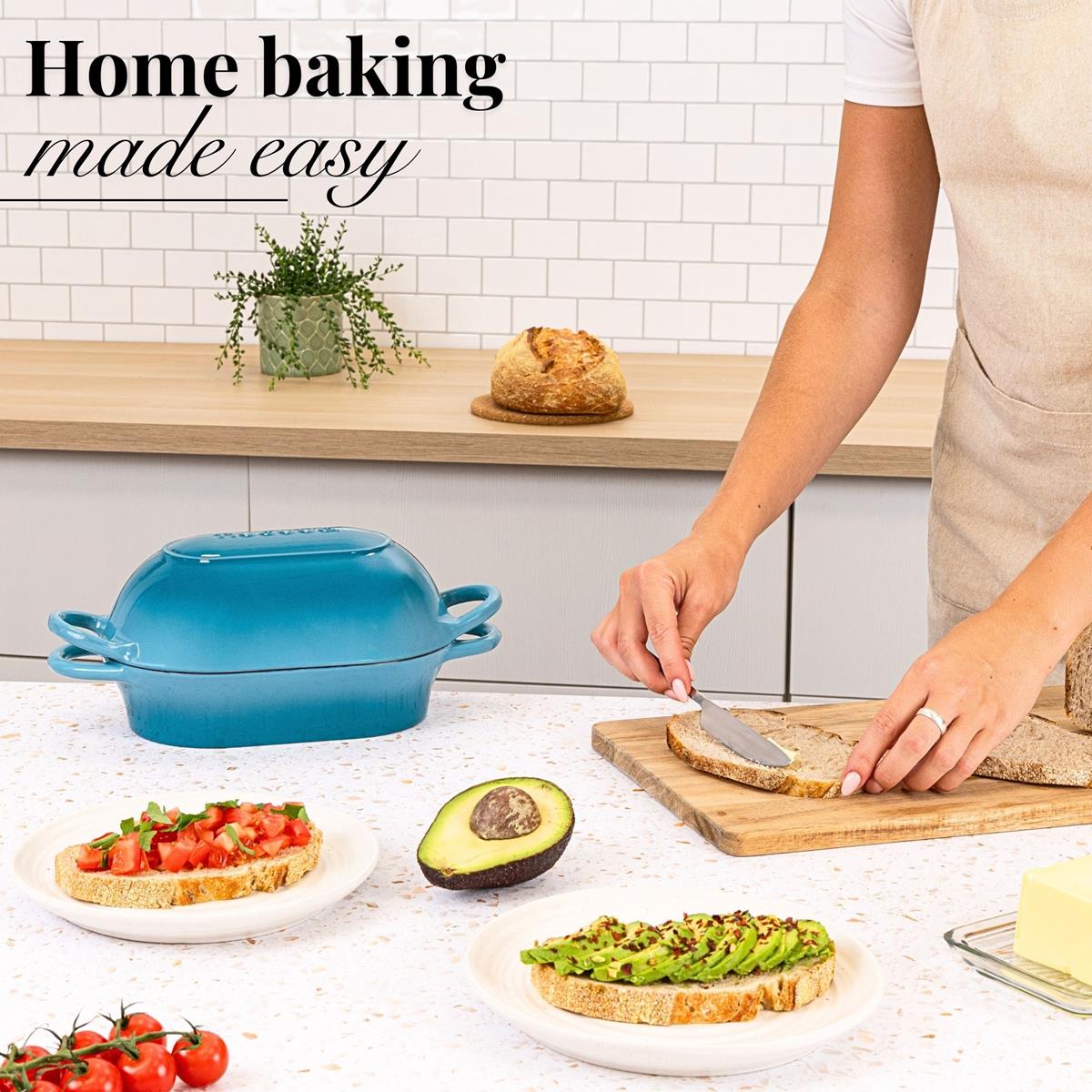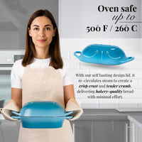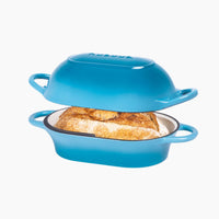 Enamelled Cast Iron Bread Loaf Pot 22x14cm, Light Blue, Dutch Oven Non-Stick