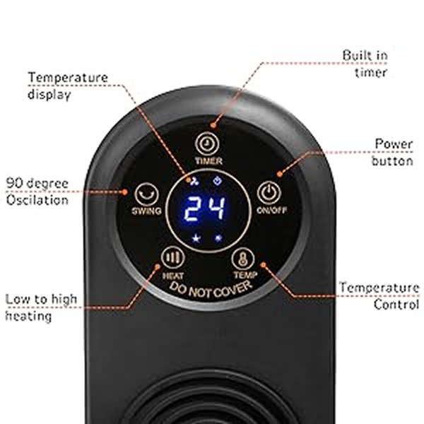 Stay cozy with this 2000W ceramic tower fan heater. Features fast heating, oscillation, a sleek touch screen, and built-in safety functions. Ideal for efficient warmth in any room or office space.