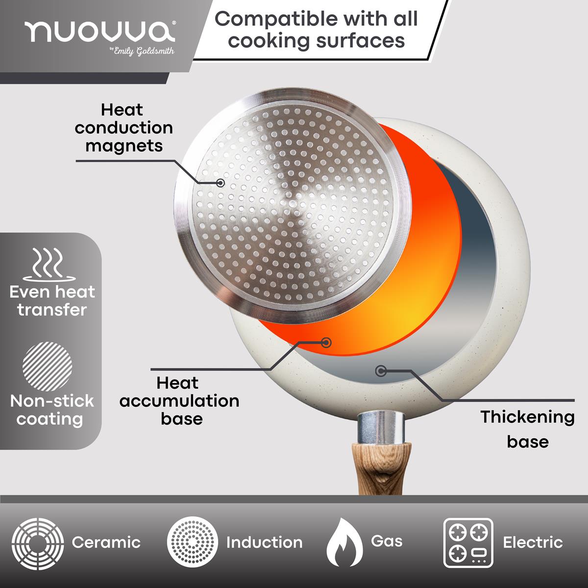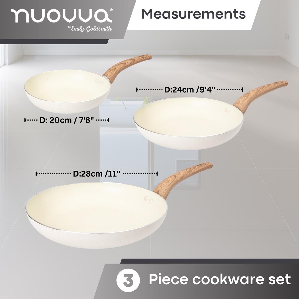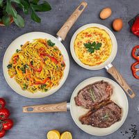 Frying Chef’s Pan Set Lightweight Induction Compatible - 3Pcs (20cm, 24cm, 28cm) Cream Granite