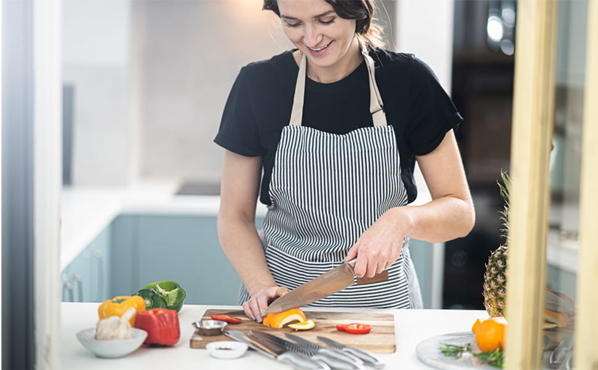 Cut, slice, and chop with this 14-piece stainless steel knife set. Includes chef, slicing, bread, utility, paring knives, 6 steak knives, and kitchen shears—all in a hardwood block with ergonomic handles.