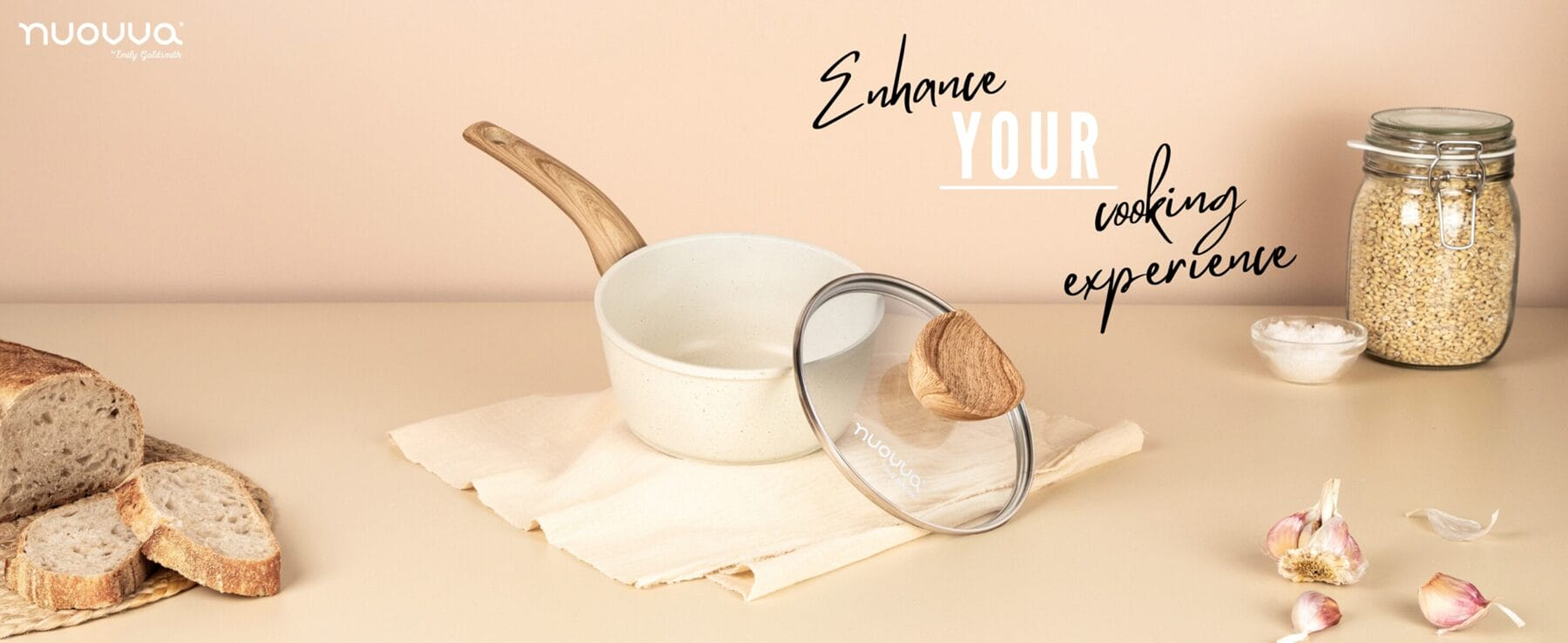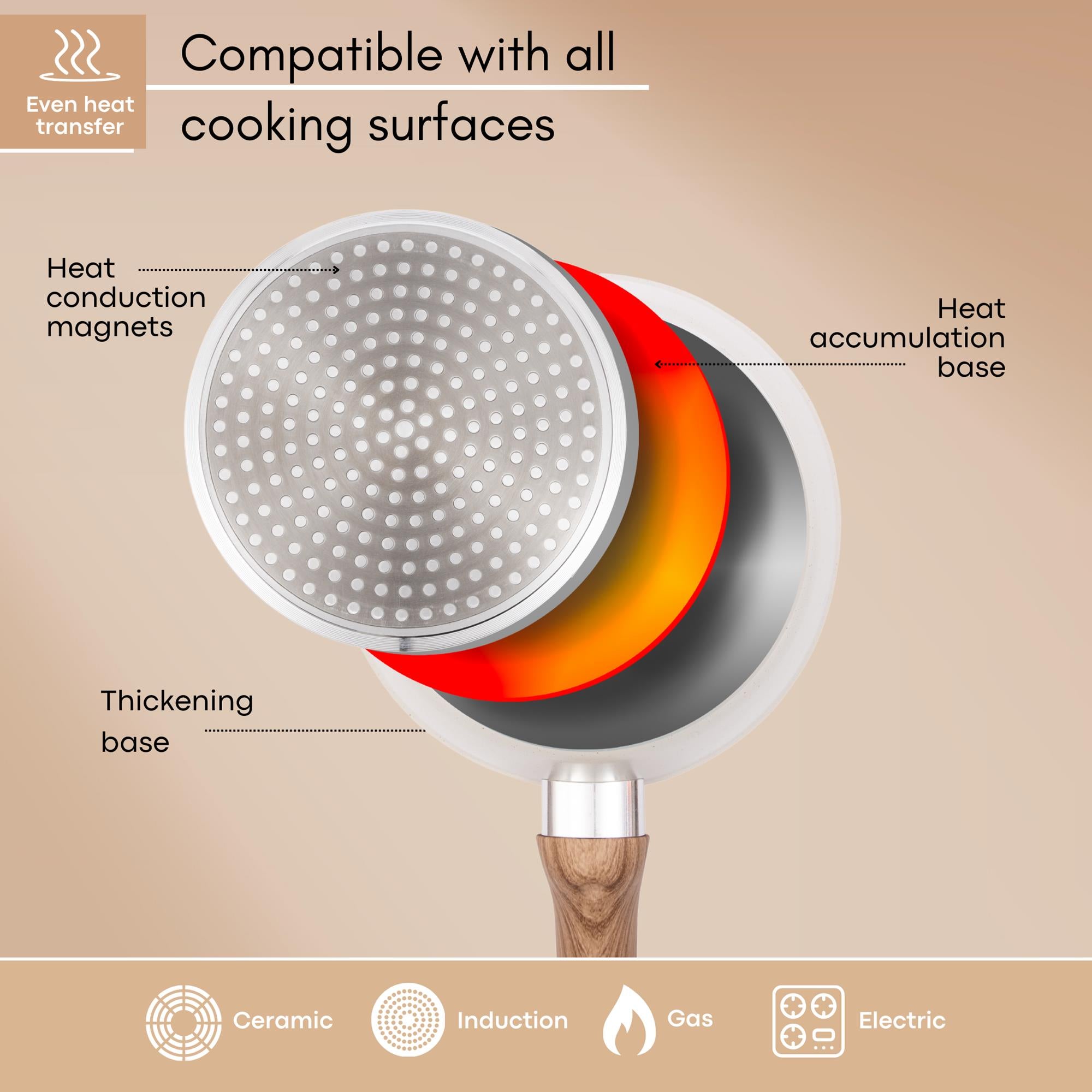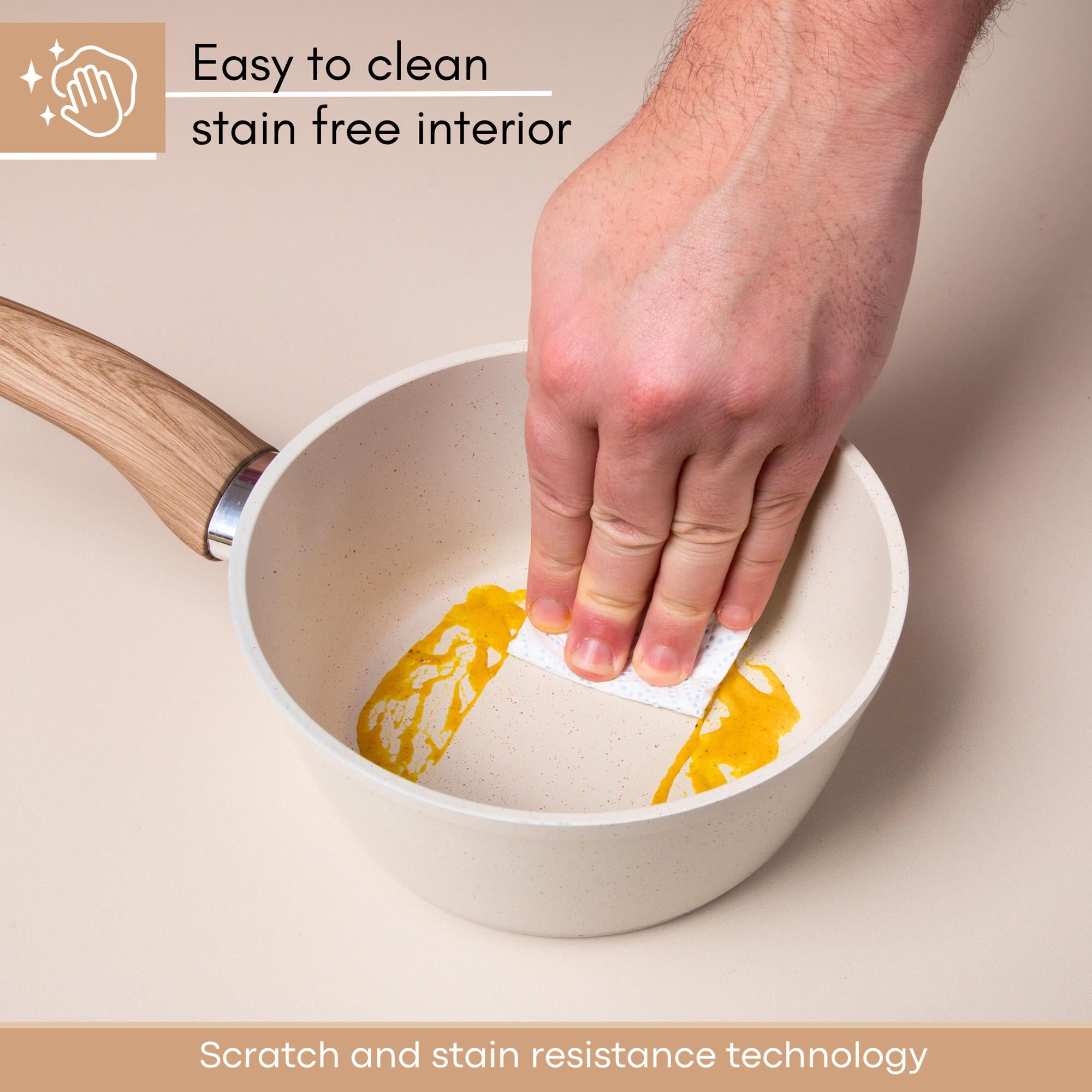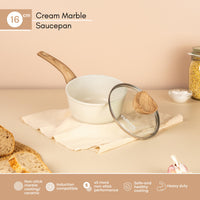 Non-Stick Saucepan with Lid Induction compatible - 16cm - Cream Granite
