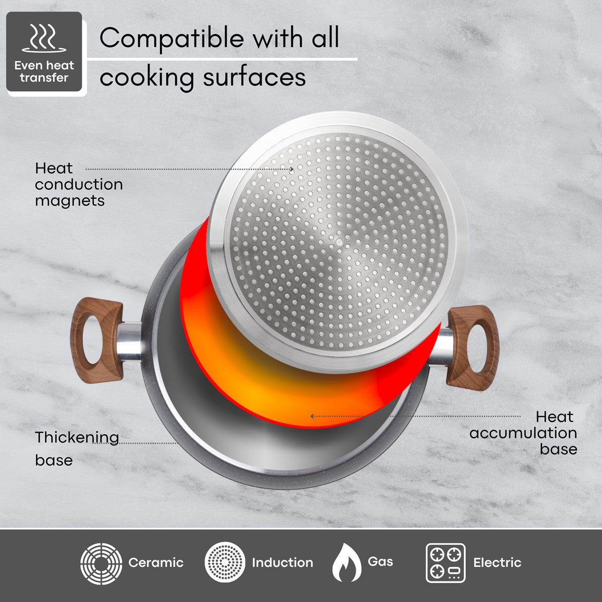 Non Stick Stock Pot with Glass Lid – Induction Casserole, 24cm, Marble