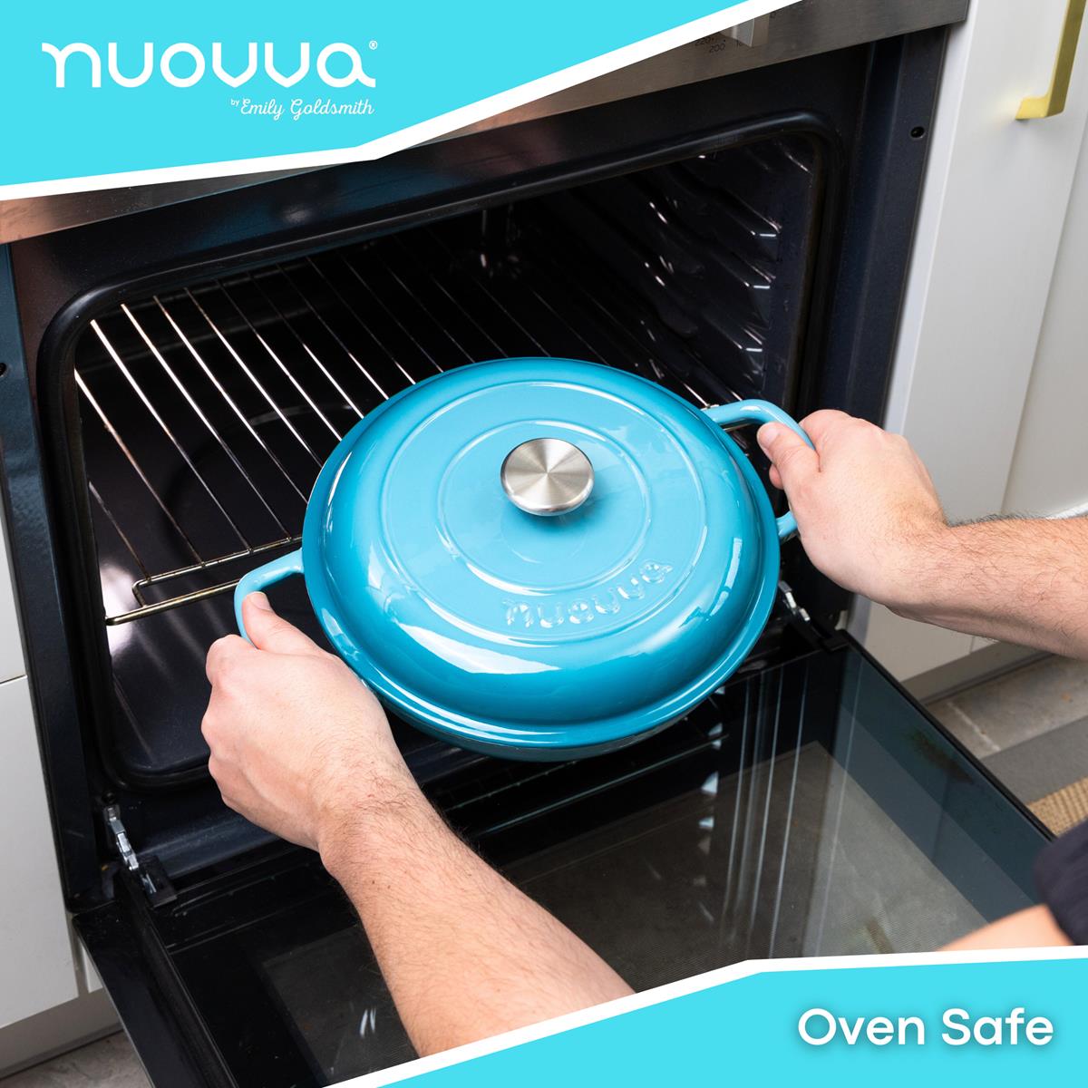 Cook with ease using this enamelled cast iron casserole dish. Great for browning, stewing, and frying. Easy to clean, no seasoning needed. Vibrant colours. Oven and hob safe with lid.