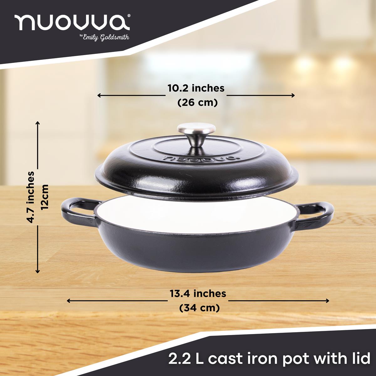 Shallow Cast Iron Casserole with Lid - 2.3-Quart (26 cm) Black