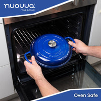Cook with ease using this enamelled cast iron casserole dish. Great for browning, stewing, and frying. Easy to clean, no seasoning needed. Vibrant colours. Oven and hob safe with lid.
