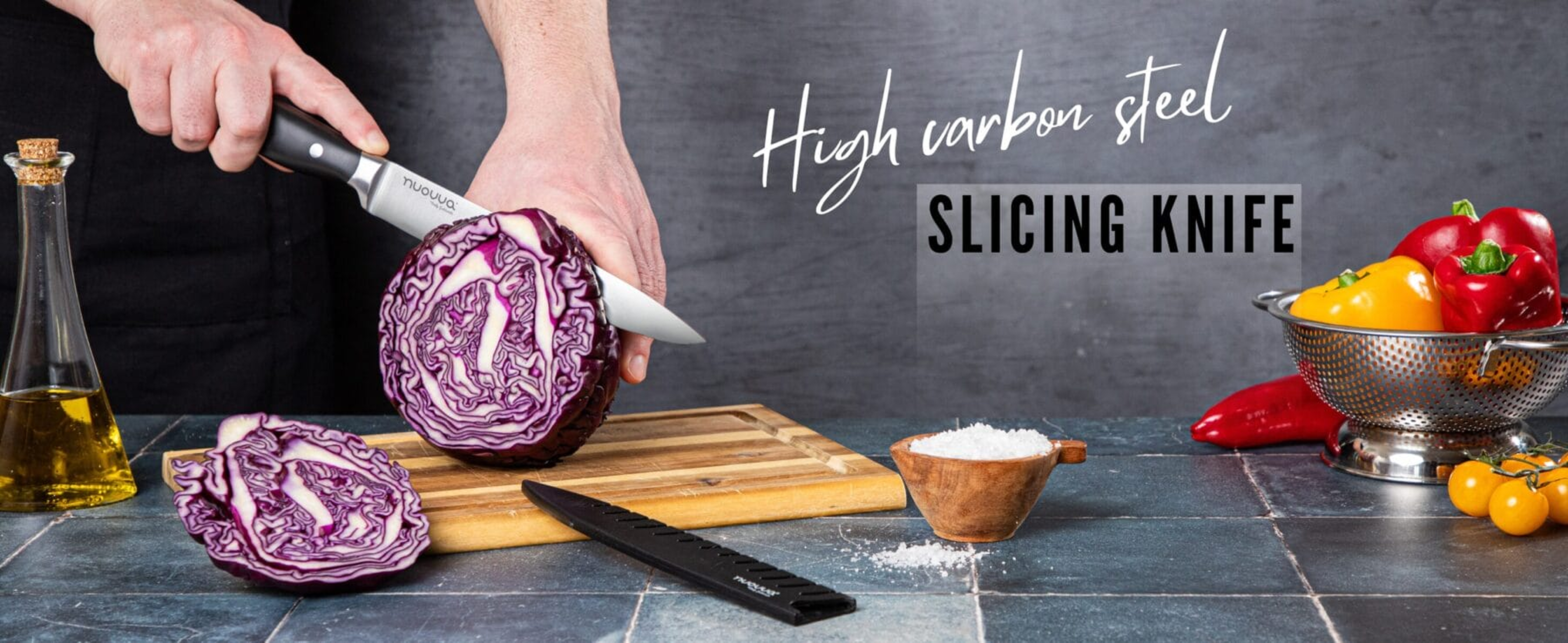Slice with precision using this 8-inch stainless steel slicing filleting knife. Features an ultra-sharp, rust-resistant blade and ergonomic handle for comfortable, effortless cutting of meats, fruits and vegetables.