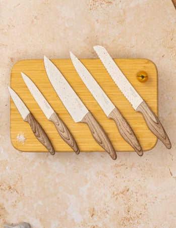5-Piece Kitchen Knife Set – Chef, Filleting, Bread, Paring & Utility - Non-Stick - Grey Granite
